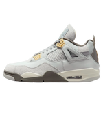 O Air Jordan 4 SE Photon Dust é construído com partes superiores de couro e camurça em várias tonalidades de cinza. A Jordan Brand está a mudar a abordagem com a gaiola de malha do Air Jordan 4, substituindo-a por camurça macia e uma asa de gaiola em couro craquelado.