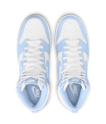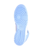 Chegando com uma parte superior suave em couro branco com sobreposições de alumínio, o modelo Nike Dunk High Aluminum oferece um visual comparável ao bloco de cores do UNC numa silhueta de cano alto. Como todos os Nike Dunks, a tração característica em forma de estrela está presente na sola, por baixo da ponta.