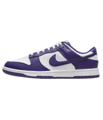 Os Nike Dunk Low Championship Purple apresentam um topo em pele branca com sobreposições e Swooshes em roxo Championship. A bordado Nike no calcanhar presta homenagem ao design original de 1985. Na base, uma sola branca e roxa adiciona o toque final.