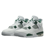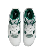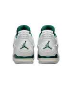 O uso de Branco puro e Verde Oxidado profundo na parte superior dá ao tênis uma aparência retrô, inspirada nos esportes universitários. A base é construída em couro liso Branco com painéis sobrepostos de couro tonal e filas onduladas de costura tonal. Os detalhes em Verde Oxidado podem ser encontrados em ilhós flutuantes, no forro sintético da gola, no forro interior, no logótipo Jumpman na etiqueta da língua, no Jumpman no calcanhar e numa faixa na entressola. Como outros modelos Jordan 4 Retro, esta versão apresenta unidades de ar visíveis no calcanhar que amortecem o pé.