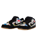Este SB Dunk Low único apresenta a arte do falecido Rammellzee, que colaborou várias vezes com a Supreme ao longo dos anos, incluindo em 2003. O artista de Nova Iorque empresta o seu estilo icónico à parte superior deste ténis de edição limitada, que exibe os seus motivos únicos no estilo graffiti.