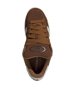 As sapatilhas adidas Campus 00s Bark têm um estilo colegial em castanho bark e branco nuvem. Feitas com camurça premium, possuem conforto e estabilidade devido ao acolchoamento interno e à base de couro. As solas em branco quebrado oferecem tração e flexibilidade, enquanto a sola de borracha castanha homenageia a história da marca Campus. São reconhecidas pelo design curvo e pela combinação de cores, adequadas para diferentes looks.