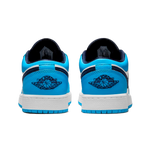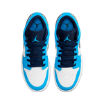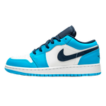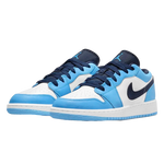 O Air Jordan 1 Low UNC 2021 apresenta uma parte superior em pele branca com sobreposições em azul-claro University Blue e o logótipo Swoosh em azul-escuro Obsidian. O modelo conta com uma base em pele branca e sobreposições em azul University Blue. Vários detalhes em azul-marinho nos atacadores, no logótipo Wings e na língua oferecem um ligeiro contraste ao visual geral. Na língua encontra-se o Jumpman em azul University Blue e no calcanhar o logótipo Jordan Wings bordado em azul-marinho. Na sola, uma entressola branca limpa e uma sola exterior em azul University Blue completam o design.